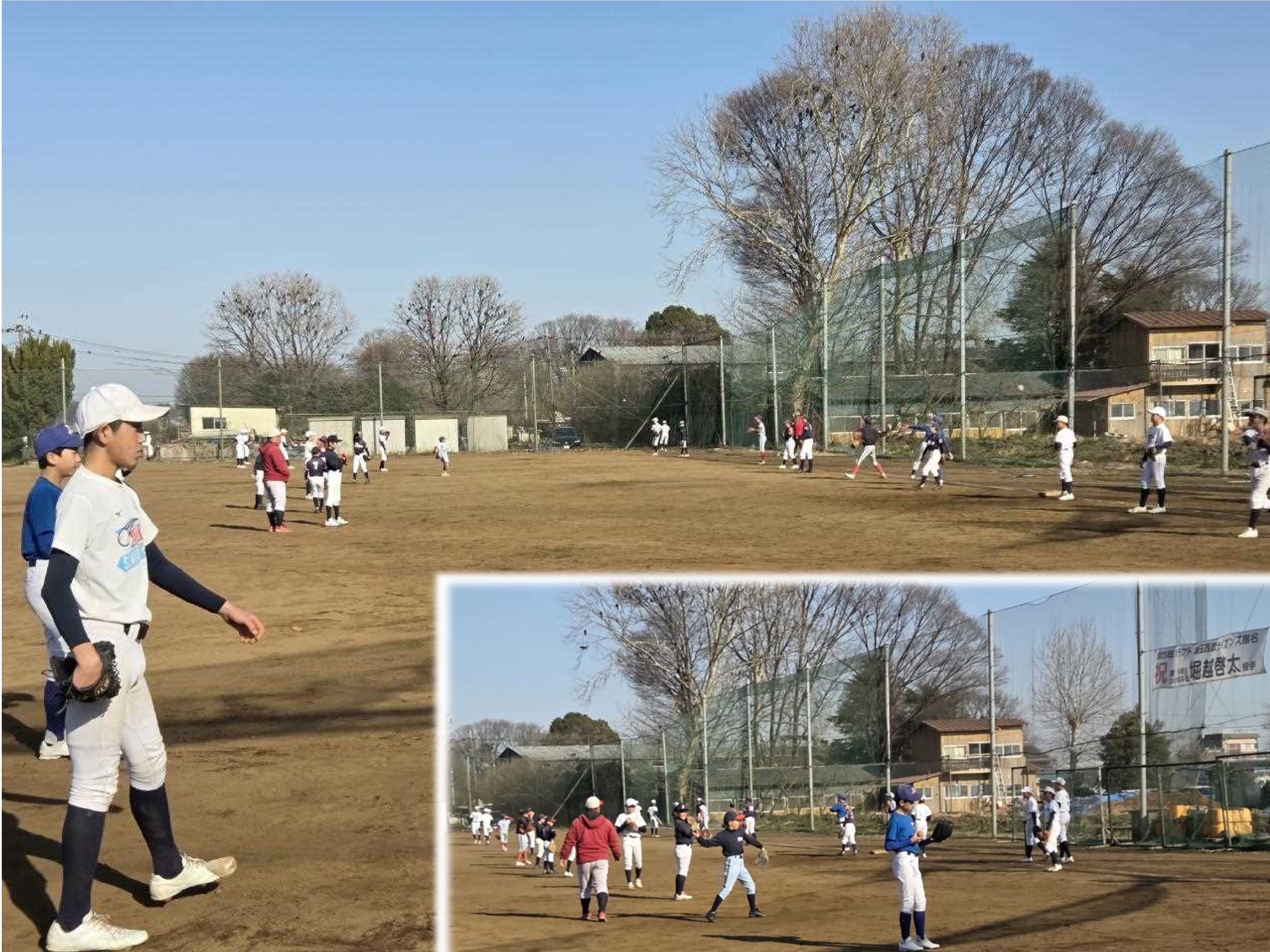埼玉西武ライオンズ に入団が決まりました堀越啓太投手(18期生・2019年卒団、花咲徳栄高校-東北福祉大学)が12月14日にチームへの挨拶のため三ヶ島グラウンドを訪れました。 当日は雨でグラウンド・コンディションが悪化したため、中止となりました合同体験練習会のために集まっていただきました小学生選手と一緒に写真撮影の他、グラウンド整備ができた午後からは選手の練習に混ざってもらいました。 堀越投手の新たなステージでの活躍に所沢南リトルシニア一同応援いたします。 引続きたくさんの皆様の応援をよろしくお願いいたします。