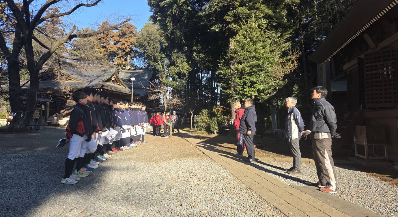 1月10日(土)、所沢北野天神社において新年の必勝祈願後、三ヶ島グランドでグランド開きを行い所沢南シニアの2026年がスタートしました。