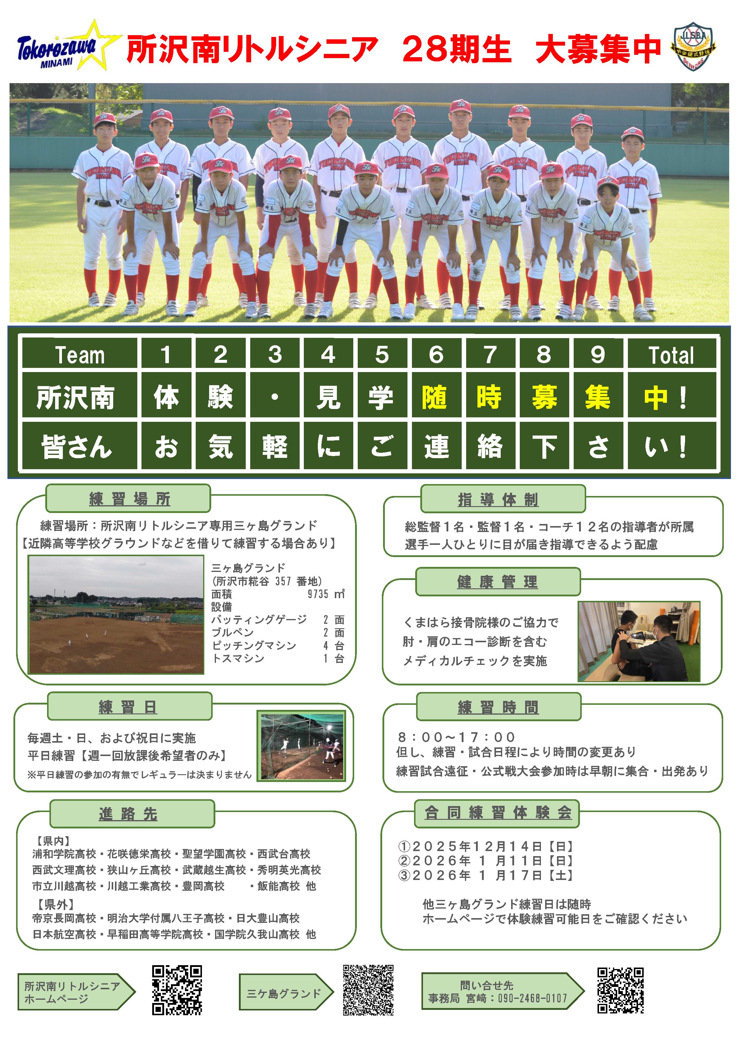 リトルシニアリーグで使用する硬式のボールは、高校、大学、社会人、プロまでが使っている硬式ボールと同じ規格のボールを使用しています。軟式から硬式へプレースタイルを替えるためには、ボールの硬さやバウンドの違い、バットの重さに慣れるための練習と時間がどうしても必要となります。 軟式と硬式でのフィーリングの違いを感じていただくために所沢南リトルシニアでは、中学生で硬式野球にチャレンジしてみようと考えている小学生の選手達に練習の見学と体験入団を行っておりますのでお気軽に参加して下さい。 所沢南リトルシニアではボールの硬さの違う野球を教えているだけではありません!高校野球でも「走・攻・守」において高い評価を得られる選手の育成に努めております。 埼玉県高等学校野球大会では、所沢南リトルシニア出身の選手の多数がベンチ入り人数枠20名の厳しい競争を乗り越えベンチ入りを果たし活躍をしています!